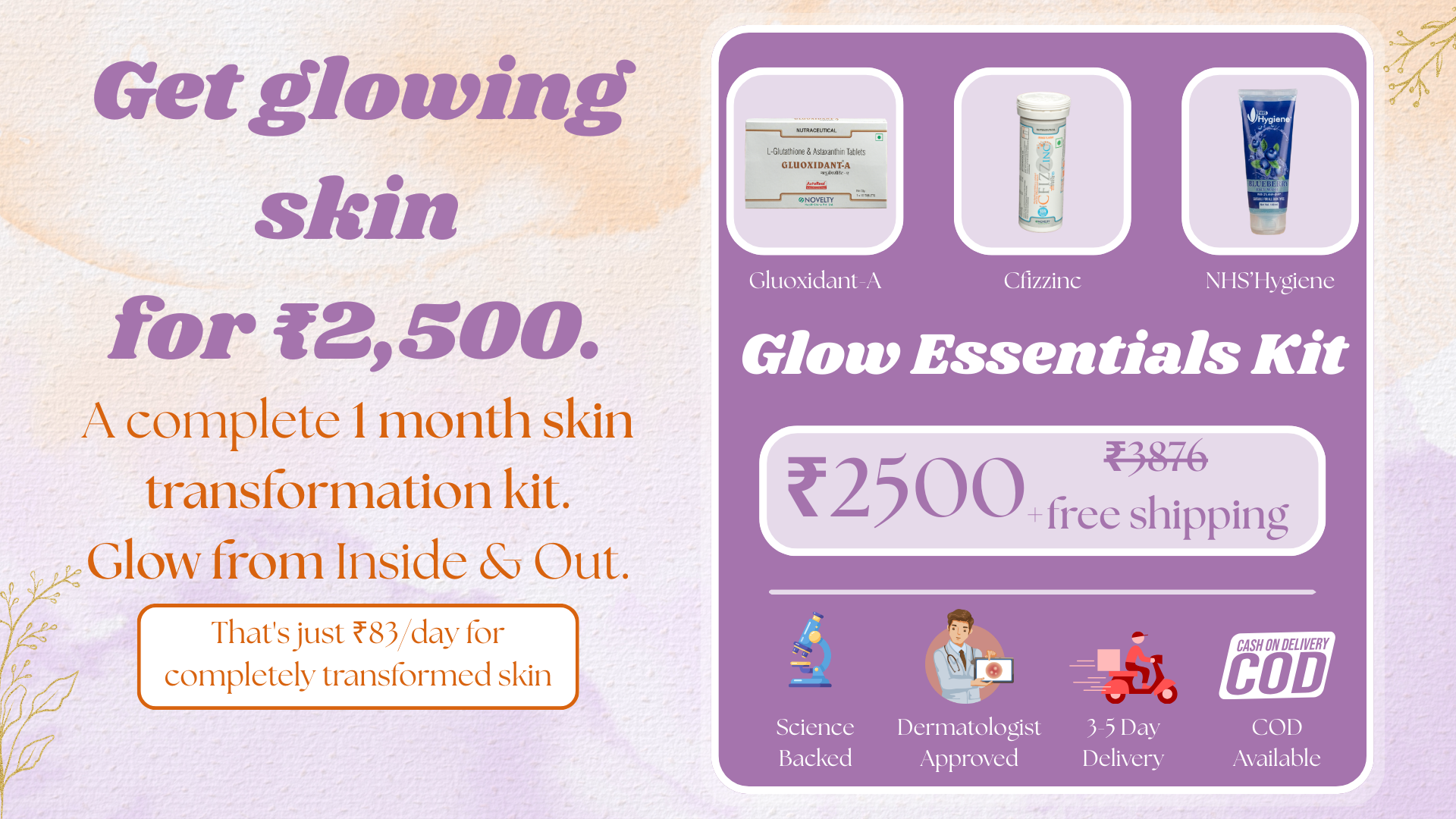 Glow Essentials Kit – 1 Month Complete Skin Transformation (Inside + Out)
